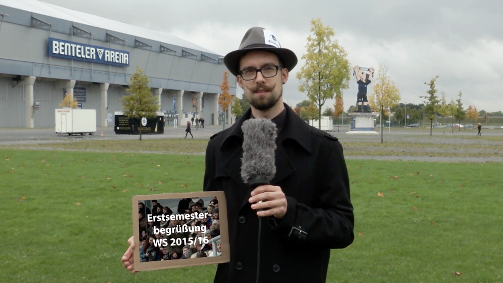 Die neue Blickfang-Sendung ist da: Die Redaktion zeigt den Poetry Clip "5 Minuten". Blickfang-Reporter Johannes Pauly berichtet von der Ersti-Begrüßung in Paderborns größtem Hörsaal, der Benteler-Arena.